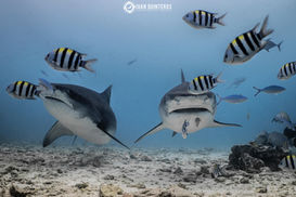 The area is famous for its frequent encounters with sharks—such as the silky shark, the Caribbean reef shark, and the nurse shark—as well as with enormous groupers, barracudas, and turtles.