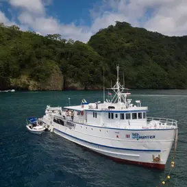 The itinerary includes embarked trips of seven or eleven days, which include diving on the islands of Darwin, Wolf, Isabela, and Fernandina.